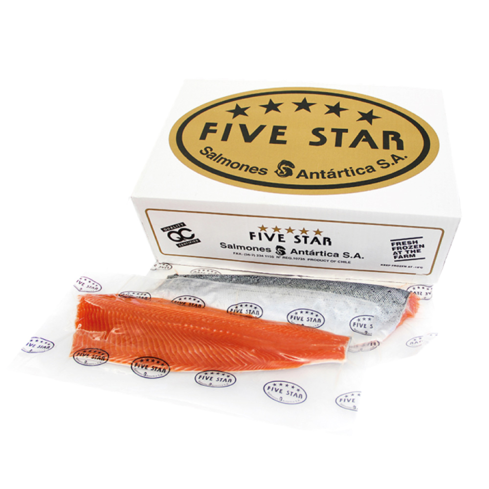 Caja de Filete de Trucha Con Piel 10 kg. Calidad Premium FIVE STAR Producto congelado y sellado al vacío IQF. Calibre 1-3 lb. Valor referencial por kg $14.990